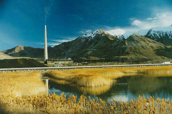The Kennecott Copper Refinery, shot from the marina on the Great Salt Lake. That smoke stack is the second tallest structure in North America -- there's a taller smokestack at a nickle smelter in Canada, near Lake Superior. |