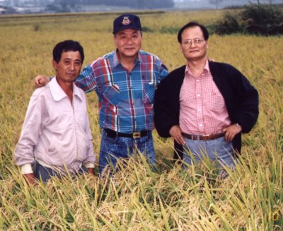 MD Kim (R), Martin Kim (C) and friend in the friend's rice field, about an hour south of Suwon. |