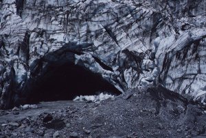 That tunnel is tall enough to drive a city bus into, but you wouldn't want to: that ice on the right side was crashing down as I watched. |