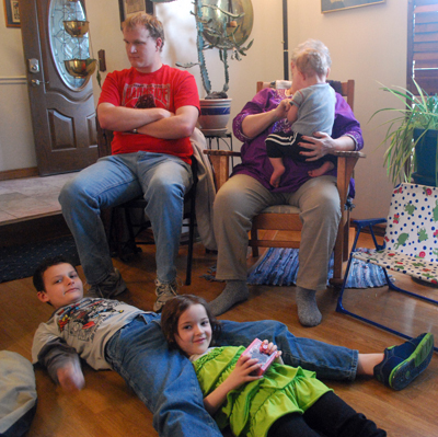 Family gathering for Adrienne's Birthday Party. Roger III, Susan, Dev, Ben and Jaina.