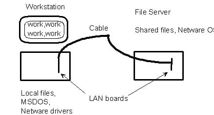 File Server: This is a personal computer running a special program. It doesn't function as a workstation. Instead it manages the shared files of the local area network.