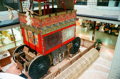 This was my first encounter with wax food displays. It sure look real to me! And below is some kind of big wagon that was in a Kyoto shopping mall. |