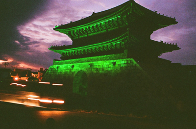 Namoon gate is part of the wall system. This was taken at night during an annual lantern parade.