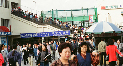 A more usual crowd. This is people getting on and off the subway headed for Seoul. |