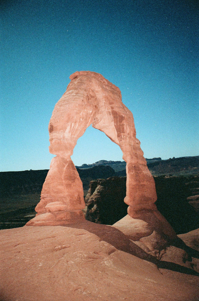 The kids and I visiting Delicate Arch on a moonlit night. The arch is backlit by the moon and I have lit the front with a flash during the minute-long time exposure. |