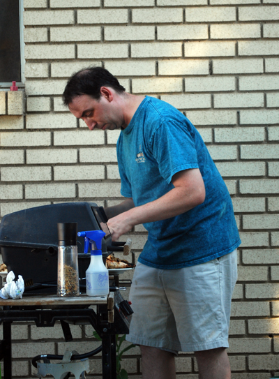 Jason is chef, and fixes some tasty chicken and steak. |