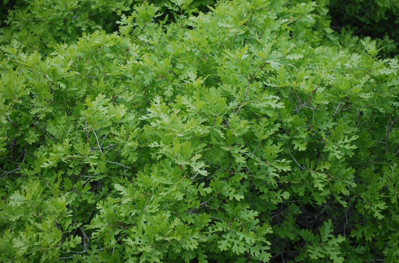 Roger's backyard. The house is on a steep slope and the backyard is filled with oak trees. The slope is so steep, you get to see the top of the trees from the patio. |