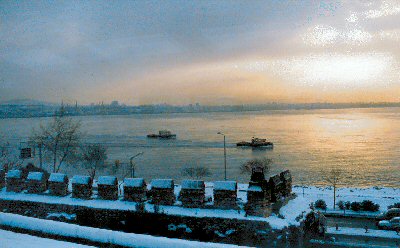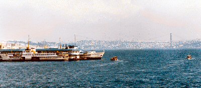 The Golden Horn has been busy with ship traffic for two thousand years. The Bosporus Bridge in the background is less than ten years old. It's bringing quite a change to Istanbul. |