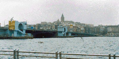 Galata Bridge over the Golden Horn. Galata Hill is in the background. |