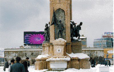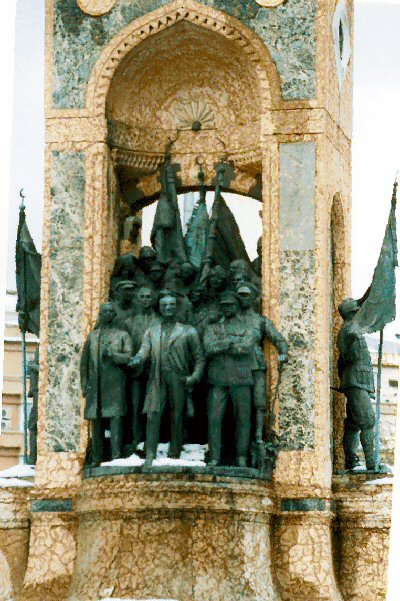 This is a statue to Mustapha Kimal, also known as Ataturk. He founded the modern Turkish Republic and promoted numerous other modernizing changes. |