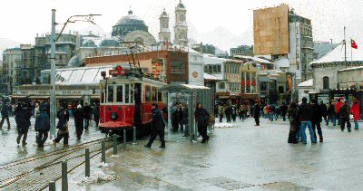 A trolley dating back to the 1920's when this road, Istiklal Caddesi, was developed. |