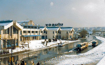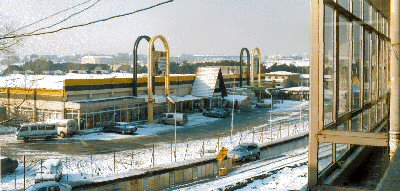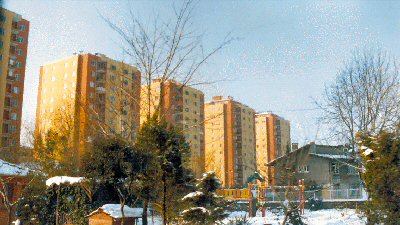 Beyond the walls the trolley went through a couple "new towns" and then ended near a circling freeway. The new towns were composed mostly of high rises that looked about seven stories, or so -- shorter than the high rises I see in Korea.