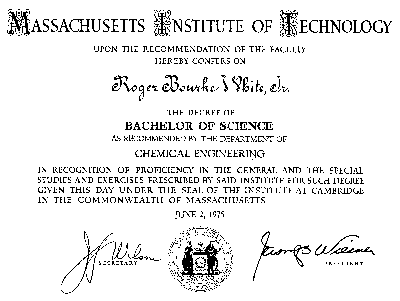 - Massachusetts Institute of Technology, Bachelor of Science Chemical Engineering,