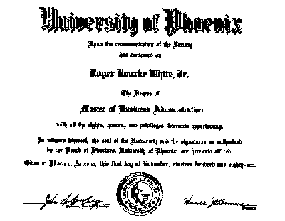 - University of Phoenix, Master of Business Administration Marketing and Organizational